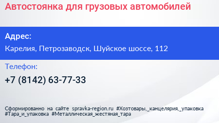 Автостоянка для грузовых автомобилей по адресу Карелия, Петрозаводск, Шуйское шоссе, 112 в дальнейшем Организация, размещена в следующих категориях: