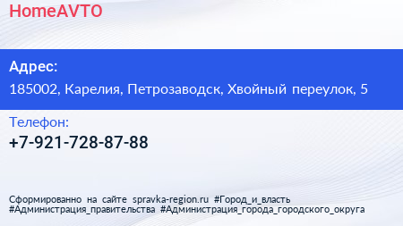 HomeAVTO по адресу 185002, Карелия, Петрозаводск, Хвойный переулок, 5 в дальнейшем Организация, размещена в следующих категориях: