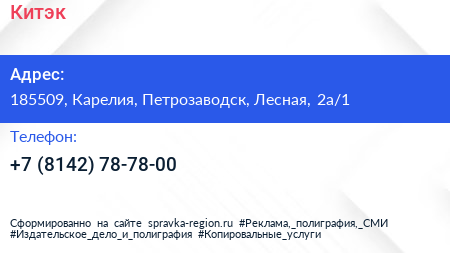 Китэк по адресу 185509, Карелия, Петрозаводск, Лесная, 2а/1 в дальнейшем Организация, размещена в следующих категориях: