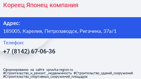 Кореец & Японец, компания по адресу 185005, Карелия, Петрозаводск, Ригачина, 37а/1 в дальнейшем Организация, размещена в следующих категориях: