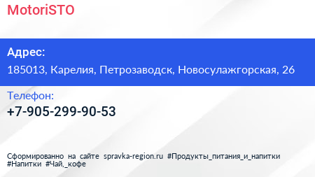 MotoriSTO по адресу 185013, Карелия, Петрозаводск, Новосулажгорская, 26 в дальнейшем Организация, размещена в следующих категориях: