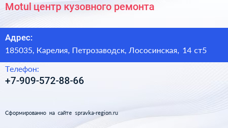 Motul, центр кузовного ремонта по адресу 185035, Карелия, Петрозаводск, Лососинская, 14 ст5 в дальнейшем Организация, размещена в следующих категориях: