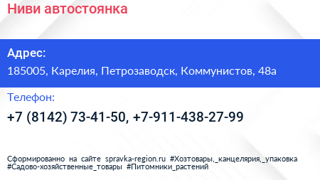 Ниви, автостоянка по адресу 185005, Карелия, Петрозаводск, Коммунистов, 48а в дальнейшем Организация, размещена в следующих категориях: