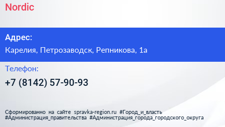 Nordic по адресу Карелия, Петрозаводск, Репникова, 1а в дальнейшем Организация, размещена в следующих категориях: