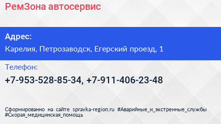 РемЗона, автосервис по адресу Карелия, Петрозаводск, Егерский проезд, 1 в дальнейшем Организация, размещена в следующих категориях: