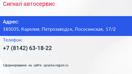 Сигнал, автосервис по адресу 185035, Карелия, Петрозаводск, Лососинская, 17/2 в дальнейшем Организация, размещена в следующих категориях: