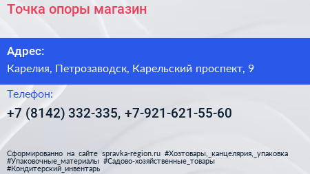 Точка опоры, магазин по адресу Карелия, Петрозаводск, Карельский проспект, 9 в дальнейшем Организация, размещена в следующих категориях: