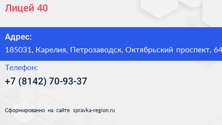 Лицей №40 по адресу 185031, Карелия, Петрозаводск, Октябрьский проспект, 64 в дальнейшем Организация, размещена в следующих категориях: