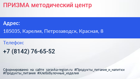 ПРИЗМА, методический центр по адресу 185035, Карелия, Петрозаводск, Красная, 8 в дальнейшем Организация, размещена в следующих категориях: