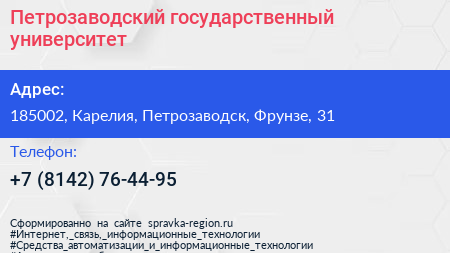 Петрозаводский государственный университет по адресу 185002, Карелия, Петрозаводск, Фрунзе, 31 в дальнейшем Организация, размещена в следующих категориях: