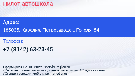 Пилот, автошкола по адресу 185035, Карелия, Петрозаводск, Гоголя, 54 в дальнейшем Организация, размещена в следующих категориях: