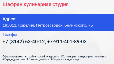 Шафран, кулинарная студия по адресу 185011, Карелия, Петрозаводск, Белинского, 7Б в дальнейшем Организация, размещена в следующих категориях: