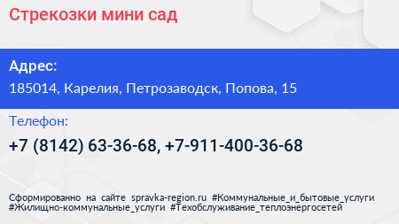 Стрекозки, мини-сад по адресу 185014, Карелия, Петрозаводск, Попова, 15 в дальнейшем Организация, размещена в следующих категориях: