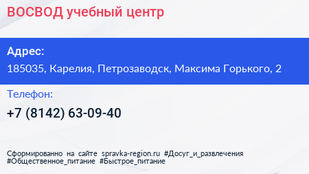 ВОСВОД, учебный центр по адресу 185035, Карелия, Петрозаводск, Максима Горького, 2 в дальнейшем Организация, размещена в следующих категориях: