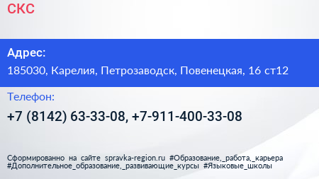 СКС по адресу 185030, Карелия, Петрозаводск, Повенецкая, 16 ст12 в дальнейшем Организация, размещена в следующих категориях: