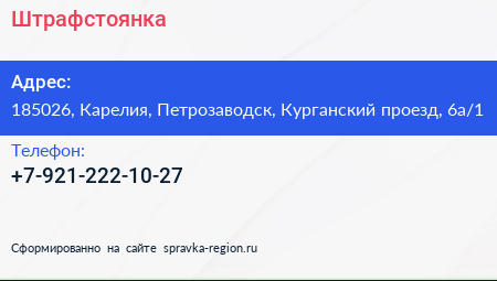 Штрафстоянка по адресу 185026, Карелия, Петрозаводск, Курганский проезд, 6а/1 в дальнейшем Организация, размещена в следующих категориях:
