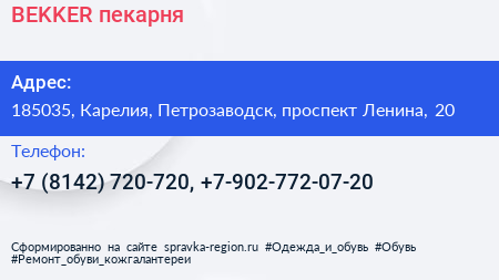 BEKKER, пекарня по адресу 185035, Карелия, Петрозаводск, проспект Ленина, 20 в дальнейшем Организация, размещена в следующих категориях: