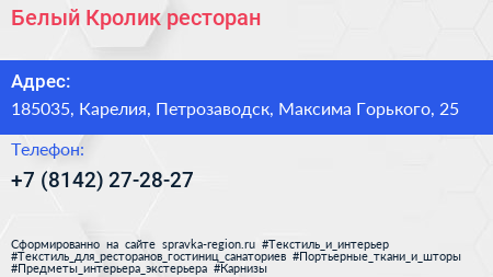 Белый Кролик, ресторан по адресу 185035, Карелия, Петрозаводск, Максима Горького, 25 в дальнейшем Организация, размещена в следующих категориях: