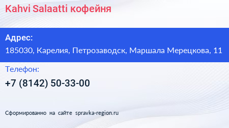 Kahvi & Salaatti, кофейня по адресу 185030, Карелия, Петрозаводск, Маршала Мерецкова, 11 в дальнейшем Организация, размещена в следующих категориях: