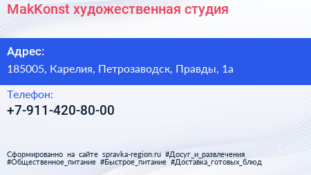MakKonst, художественная студия по адресу 185005, Карелия, Петрозаводск, Правды, 1а в дальнейшем Организация, размещена в следующих категориях: