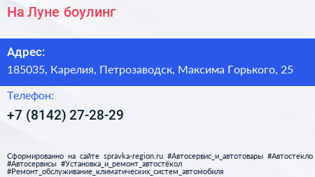 На Луне, боулинг по адресу 185035, Карелия, Петрозаводск, Максима Горького, 25 в дальнейшем Организация, размещена в следующих категориях: