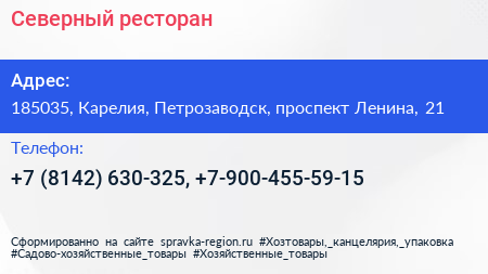 Северный, ресторан по адресу 185035, Карелия, Петрозаводск, проспект Ленина, 21 в дальнейшем Организация, размещена в следующих категориях: