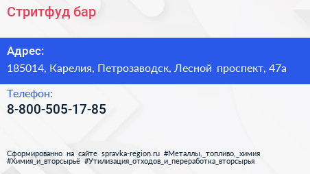 Стритфуд-бар по адресу 185014, Карелия, Петрозаводск, Лесной проспект, 47а в дальнейшем Организация, размещена в следующих категориях: