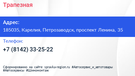 Трапезная по адресу 185035, Карелия, Петрозаводск, проспект Ленина, 35 в дальнейшем Организация, размещена в следующих категориях: