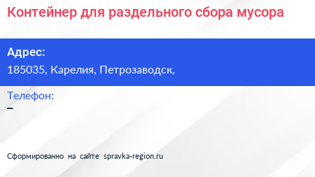 Контейнер для раздельного сбора мусора по адресу 185035, Карелия, Петрозаводск, в дальнейшем Организация, размещена в следующих категориях: