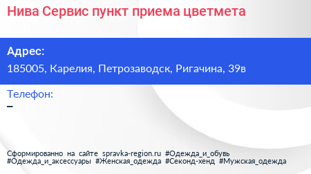Нива-Сервис, пункт приема цветмета по адресу 185005, Карелия, Петрозаводск, Ригачина, 39в в дальнейшем Организация, размещена в следующих категориях: