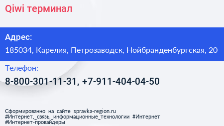 Qiwi, терминал по адресу 185034, Карелия, Петрозаводск, Нойбранденбургская, 20 в дальнейшем Организация, размещена в следующих категориях:
