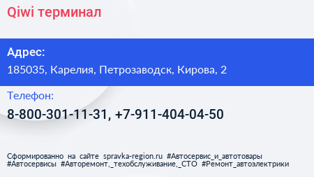 Qiwi, терминал по адресу 185035, Карелия, Петрозаводск, Кирова, 2 в дальнейшем Организация, размещена в следующих категориях: