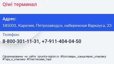 Qiwi, терминал по адресу 185031, Карелия, Петрозаводск, набережная Варкауса, 23 в дальнейшем Организация, размещена в следующих категориях: