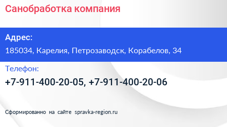 Санобработка, компания по адресу 185034, Карелия, Петрозаводск, Корабелов, 34 в дальнейшем Организация, размещена в следующих категориях: