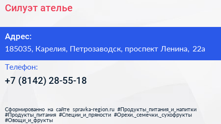 Силуэт, ателье по адресу 185035, Карелия, Петрозаводск, проспект Ленина, 22а в дальнейшем Организация, размещена в следующих категориях: