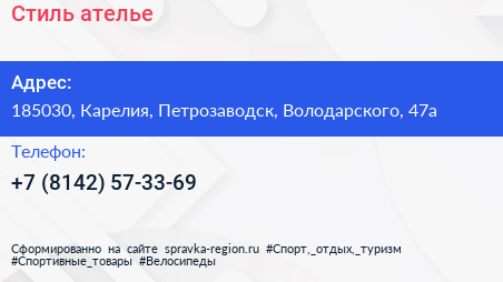 Стиль, ателье по адресу 185030, Карелия, Петрозаводск, Володарского, 47а в дальнейшем Организация, размещена в следующих категориях: