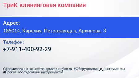 ТриК, клининговая компания по адресу 185014, Карелия, Петрозаводск, Архипова, 3 в дальнейшем Организация, размещена в следующих категориях: