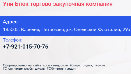 Уни-Блок, торгово-закупочная компания по адресу 185005, Карелия, Петрозаводск, Онежской Флотилии, 29а в дальнейшем Организация, размещена в следующих категориях: