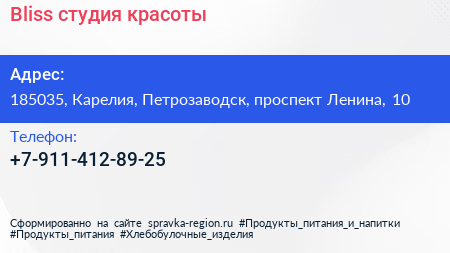 Bliss, студия красоты по адресу 185035, Карелия, Петрозаводск, проспект Ленина, 10 в дальнейшем Организация, размещена в следующих категориях: