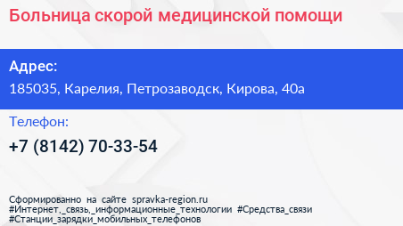 Больница скорой медицинской помощи по адресу 185035, Карелия, Петрозаводск, Кирова, 40а в дальнейшем Организация, размещена в следующих категориях: