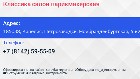 Классика, салон-парикмахерская по адресу 185033, Карелия, Петрозаводск, Нойбранденбургская, 6 к2 в дальнейшем Организация, размещена в следующих категориях:
