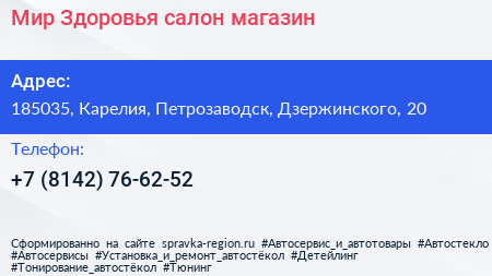 Мир Здоровья, салон-магазин по адресу 185035, Карелия, Петрозаводск, Дзержинского, 20 в дальнейшем Организация, размещена в следующих категориях: