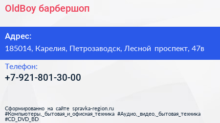 OldBoy, барбершоп по адресу 185014, Карелия, Петрозаводск, Лесной проспект, 47в в дальнейшем Организация, размещена в следующих категориях: