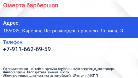 Омерта, барбершоп по адресу 185035, Карелия, Петрозаводск, проспект Ленина, 3 в дальнейшем Организация, размещена в следующих категориях:
