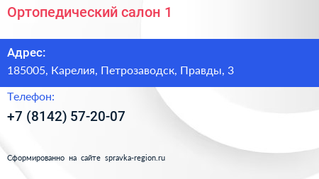 Ортопедический салон №1 по адресу 185005, Карелия, Петрозаводск, Правды, 3 в дальнейшем Организация, размещена в следующих категориях: