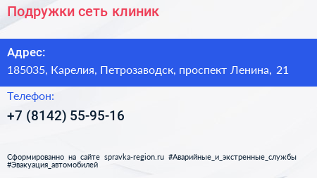 Подружки, сеть клиник по адресу 185035, Карелия, Петрозаводск, проспект Ленина, 21 в дальнейшем Организация, размещена в следующих категориях:
