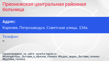 Прионежская центральная районная больница по адресу Карелия, Петрозаводск, Советская улица, 134а в дальнейшем Организация, размещена в следующих категориях: