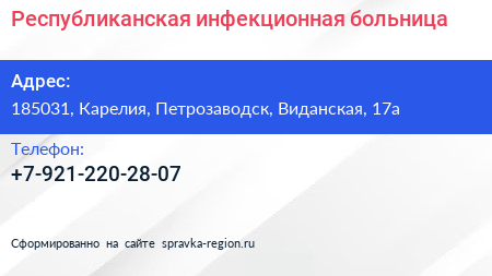 Республиканская инфекционная больница по адресу 185031, Карелия, Петрозаводск, Виданская, 17а в дальнейшем Организация, размещена в следующих категориях: