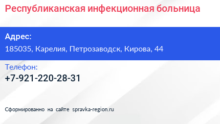 Республиканская инфекционная больница по адресу 185035, Карелия, Петрозаводск, Кирова, 44 в дальнейшем Организация, размещена в следующих категориях: