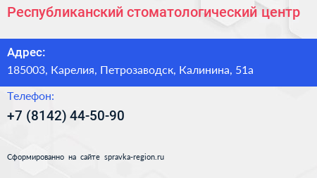Республиканский стоматологический центр по адресу 185003, Карелия, Петрозаводск, Калинина, 51а в дальнейшем Организация, размещена в следующих категориях: